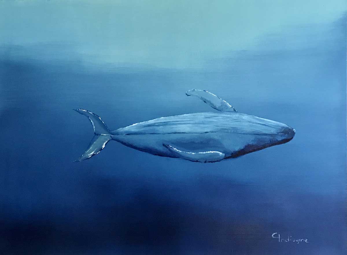 In both cases, it is a mystical, almost surreal encounter, and I wanted to represent the whales as suspended in the water, in time, so that they become the image of a profound meditation.