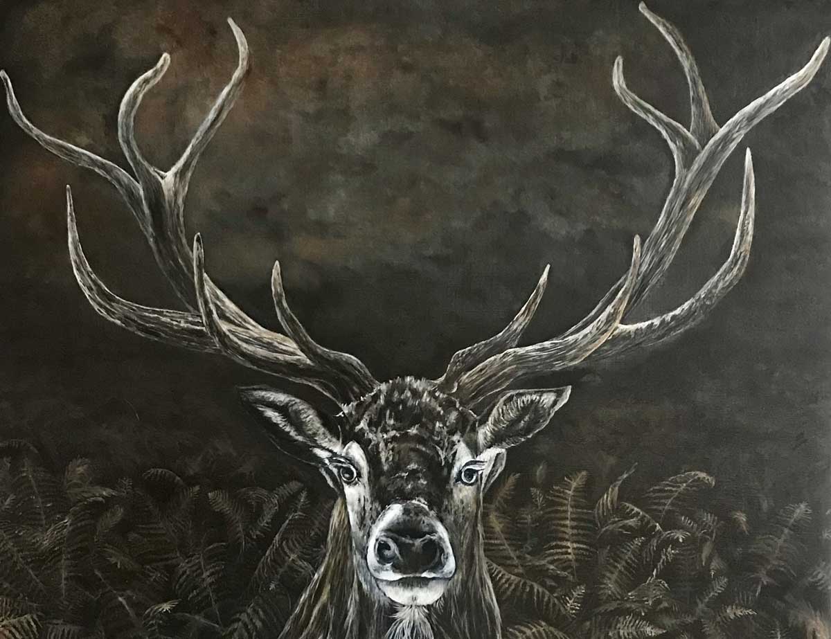 Une relation intime s’est créée entre le cerf et moi lorsque j’ai ressenti le moment de le faire venir sur ma toile.