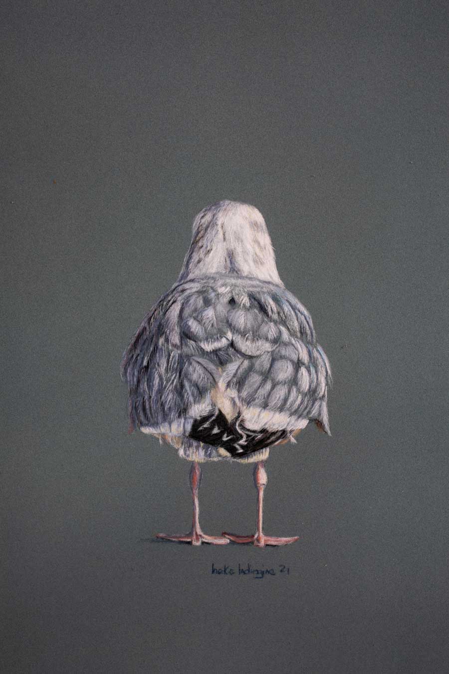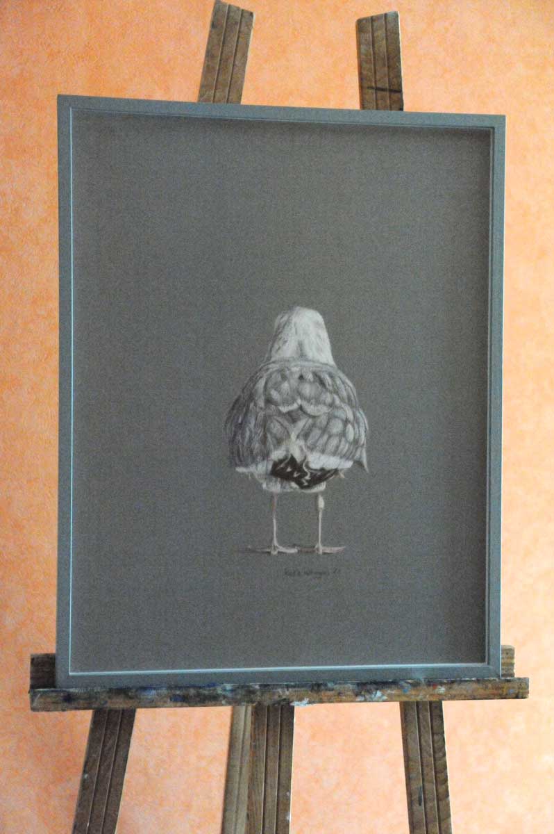 A certain humour to represent this seagull which knows very well that I am painting it. But it poses, unperturbed, with a certain pleasure. I enjoy painting the shades of grey of the feathers, the fineness of the legs.